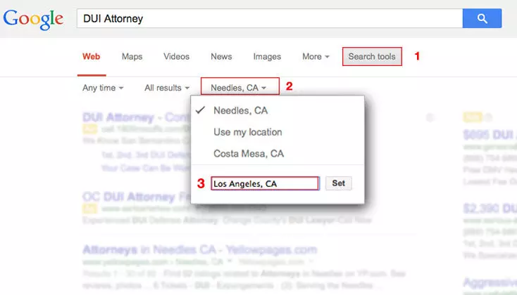 Implicit Location: Search tools settings for implicit location (video instruction).